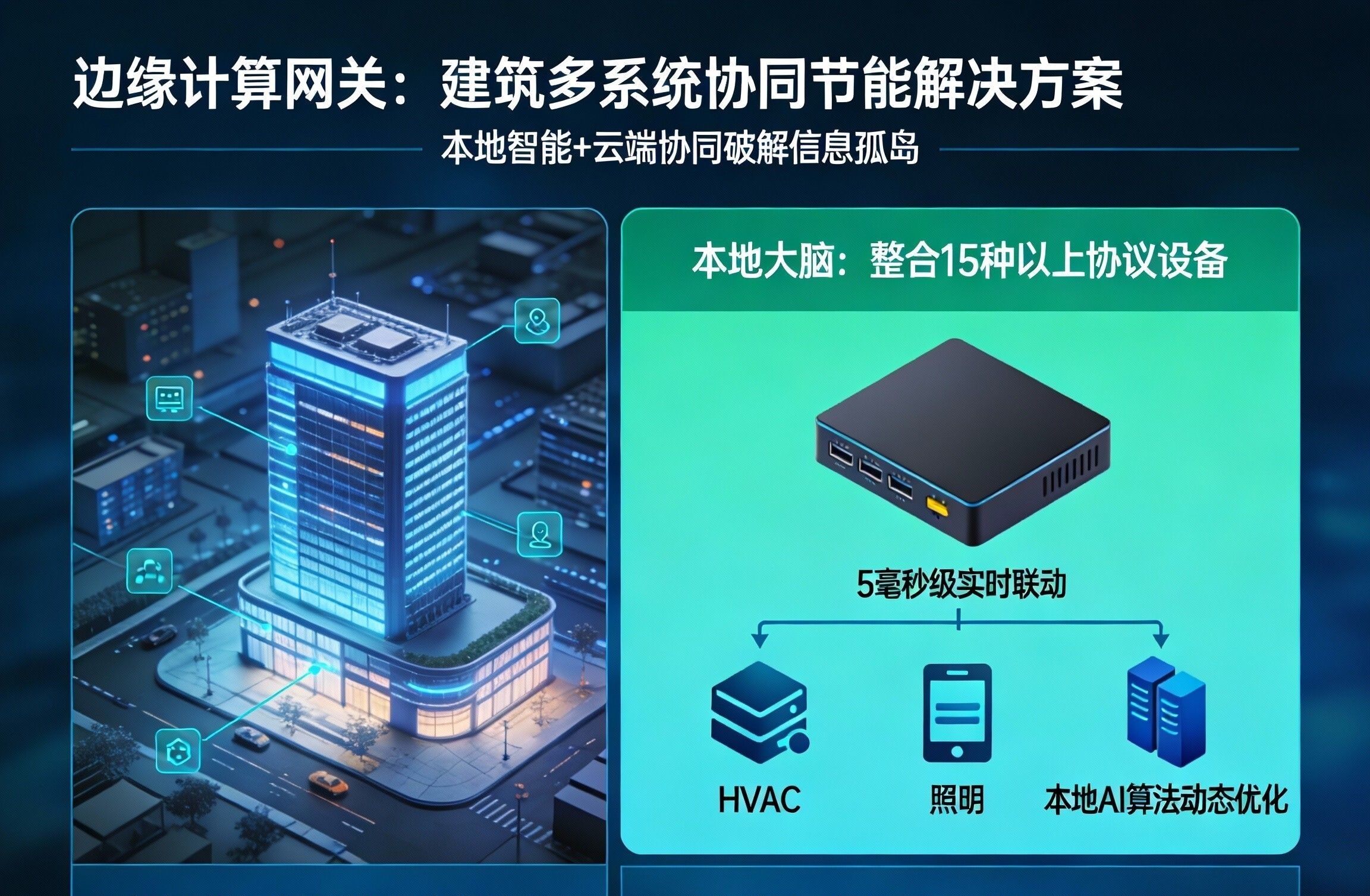 传统楼宇管理长期面临“信息孤岛”难题——空调、照明、电梯、供配电等系统都是自独立运行,数据不互通、响应滞后、能耗浪费严重。某写字楼的实测数据显示,因系统割裂导致空调的能耗浪费超30%。在“双碳”目标与运营成本压力双重驱动下,管理者需一种既能提升能效、又不依赖复杂云端架构的落地方案。边缘计算网关的兴起,为实现建筑多系统协同节能提供了关键突破口。一、建筑多系统协同节能建筑多系统协同节能的核心,……