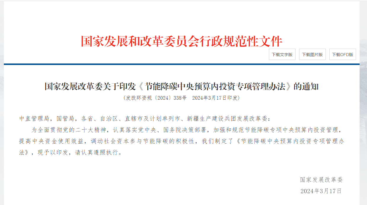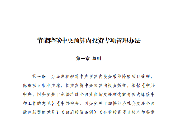 为系统把握国家发展改革委最新印发的《节能降碳中央预算内投资专项管理办法》(简称《办法》)的核心要义,现从战略定位、资金配置、申报管理、执行监督四个层面进行全面解析。一、政策背景与核心目标1. 顶层设计明确依据《中共中央、国务院关于完整准确全面贯彻新发展理念做好碳达峰碳中和工作的意见》等十余项法规文件制定,紧密围绕“双碳”目标,突出 “一钱多用” 原则(第二条),推动经济社会全面绿色转型。……