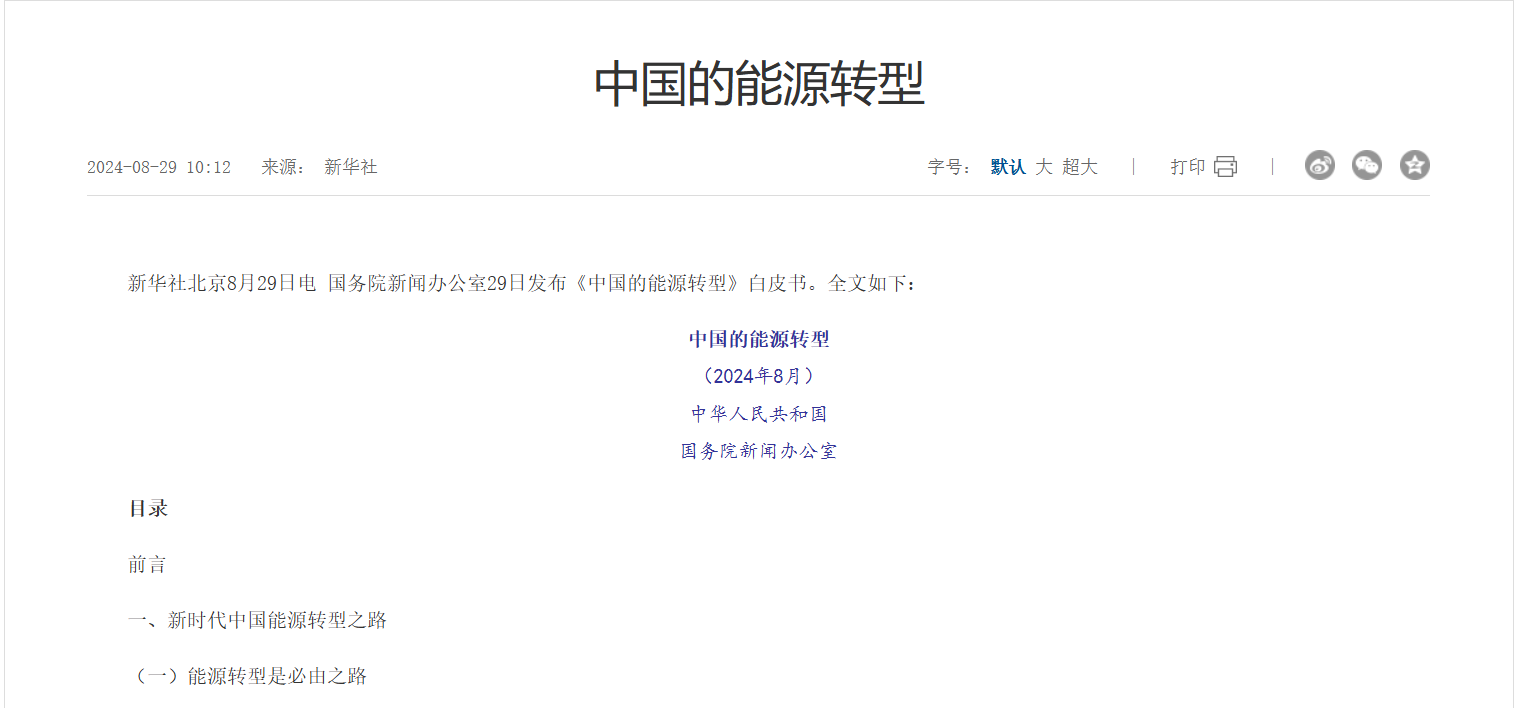 引言:能源转型的时代命题2024年8月发布的《中国的能源转型》白皮书,以系统性框架勾勒出中国作为全球最大能源生产与消费国的发展路径。这份文件不仅是对"四个革命、一个合作"能源安全新战略的实践总结,更揭示了发展中国家在工业化进程中实现绿色转型的独特范式。其核心价值在于:通过制度创新、技术突破与全球协作,破解了"既要发展又要减排"的世界性难题。一、转型逻辑:从被动应对到主动引领(一)战略定力的三重根基……