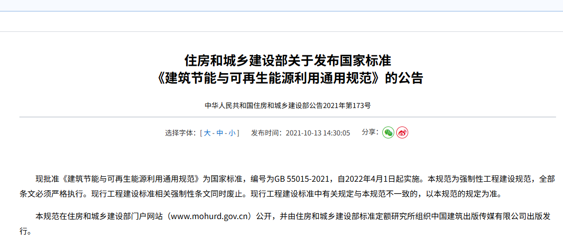 一、标准概述国家标准《建筑节能与可再生能源利用通用规范》(GB 55015-2021)是我国建筑节能领域首次发布的全文强制性工程建设规范,于2021年9月8日发布,2022年4月1日正式实施。该规范是建筑领域实现碳达峰、碳中和目标的重要支撑,也是推动建筑用能结构转型的重要举措。规范适用于新建、扩建和改建建筑以及既有建筑节能改造工程的建筑节能与可再生能源建筑应用的设计、施工、验收及运行管理。其核心目……