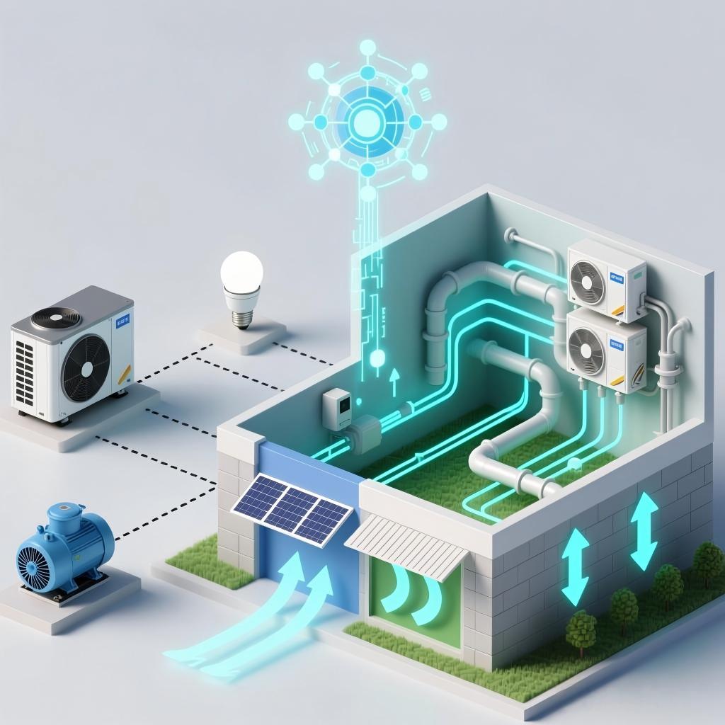 暖通空调系统是建筑主要能耗单元,通常占据建筑总能耗的40%-60%。系统优化强调冷热源、输配系统及末端装置的整体匹配。例如,通过变频技术与动态水力平衡调节,使水泵与风机的工作点始终处于高效区间;通过优化冷冻水供回水温差,提升冷源效率与输配能效。同时,应考虑不同季节与负荷下的运行策略,实现多台设备的群控与最优启停。